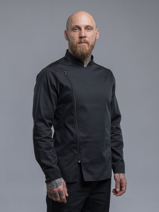 Veste de cuisine professionnelle pour homme à manches longues, noire