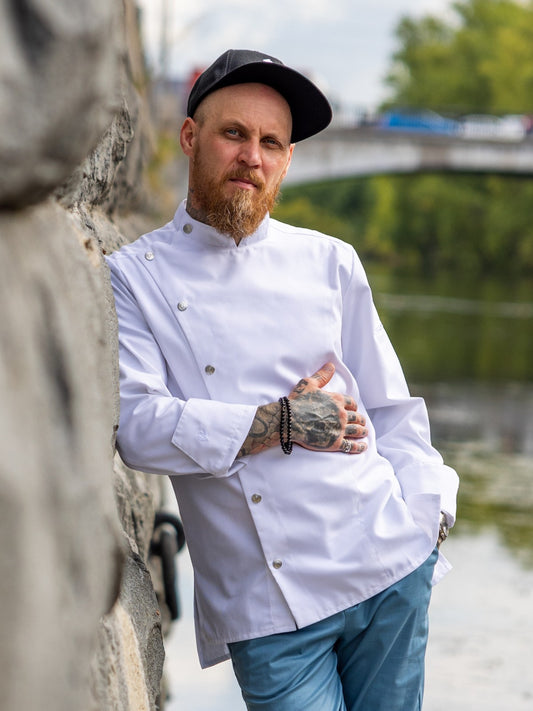 Veste de chef professionnelle pour homme, blanche, manches longues