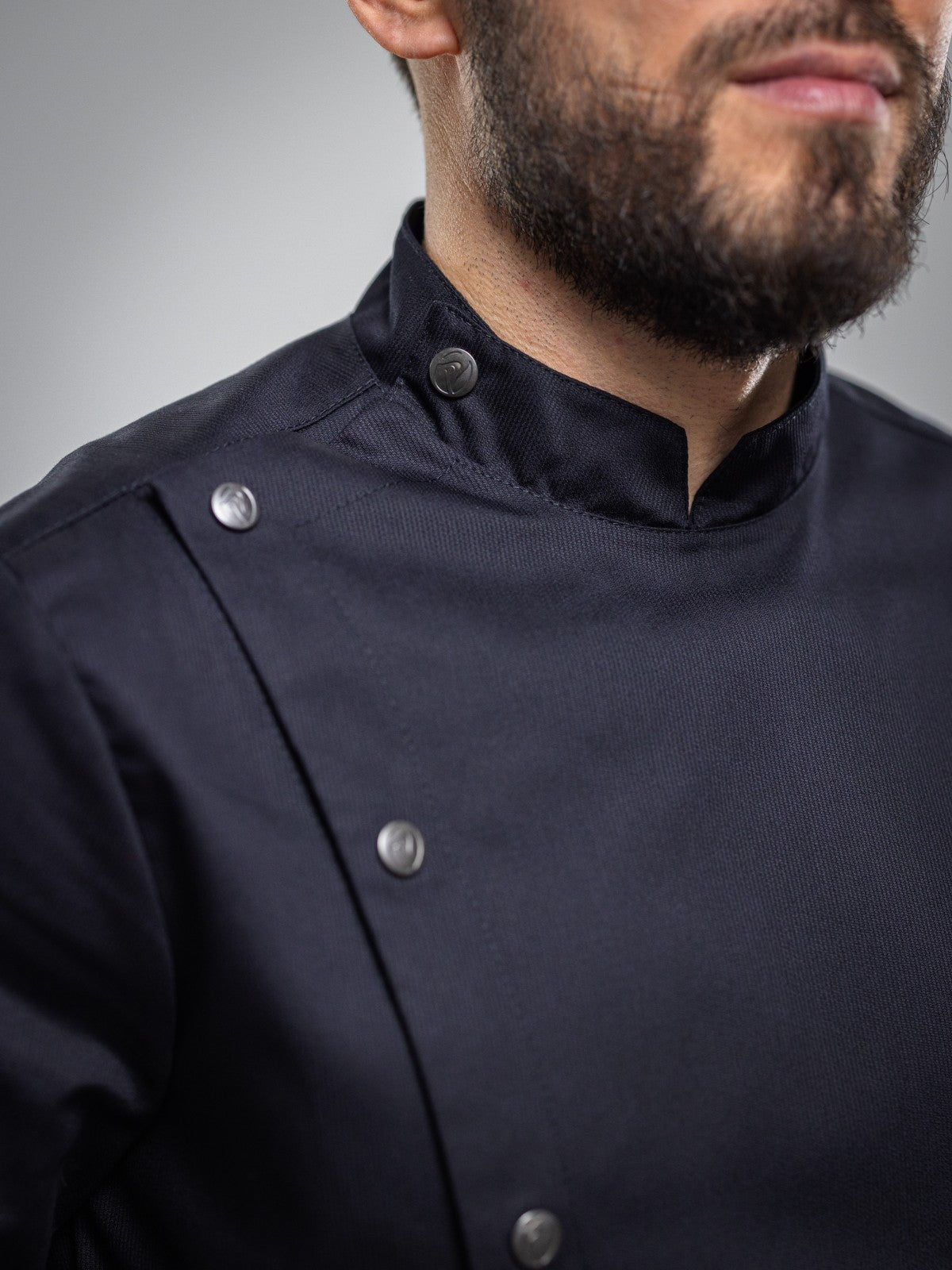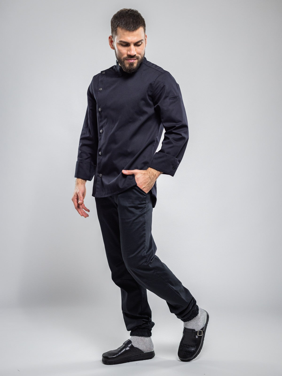 Veste de chef professionnelle pour homme, noire, manches longues, coupe ajustée